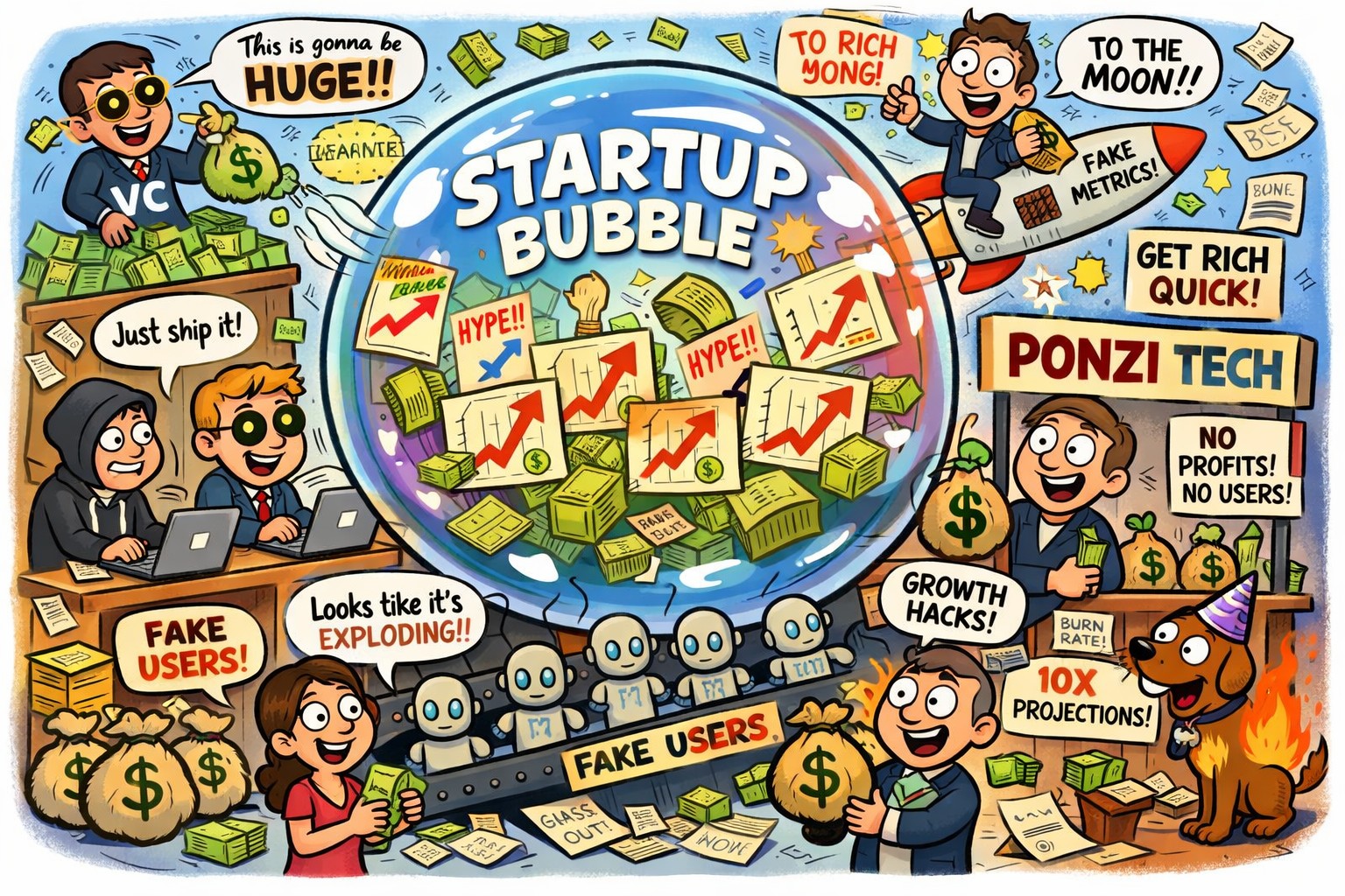 Tolike investitore neko mora lagati da su pametni i rasturaju i najveći znalci na svijetu, zato fondovi unajmljuju VC-jeve koji u svojim patagonia prslucima na twitteru i po gala ruckovima ubjedjuju ove sa jahtama da im dadnu pare, a onda ubjedjuju naivne informaticare da im dadnu vrijeme. Time započinje ovaj napuhani dio IT industrije koji je sad drastično ispuhao.
